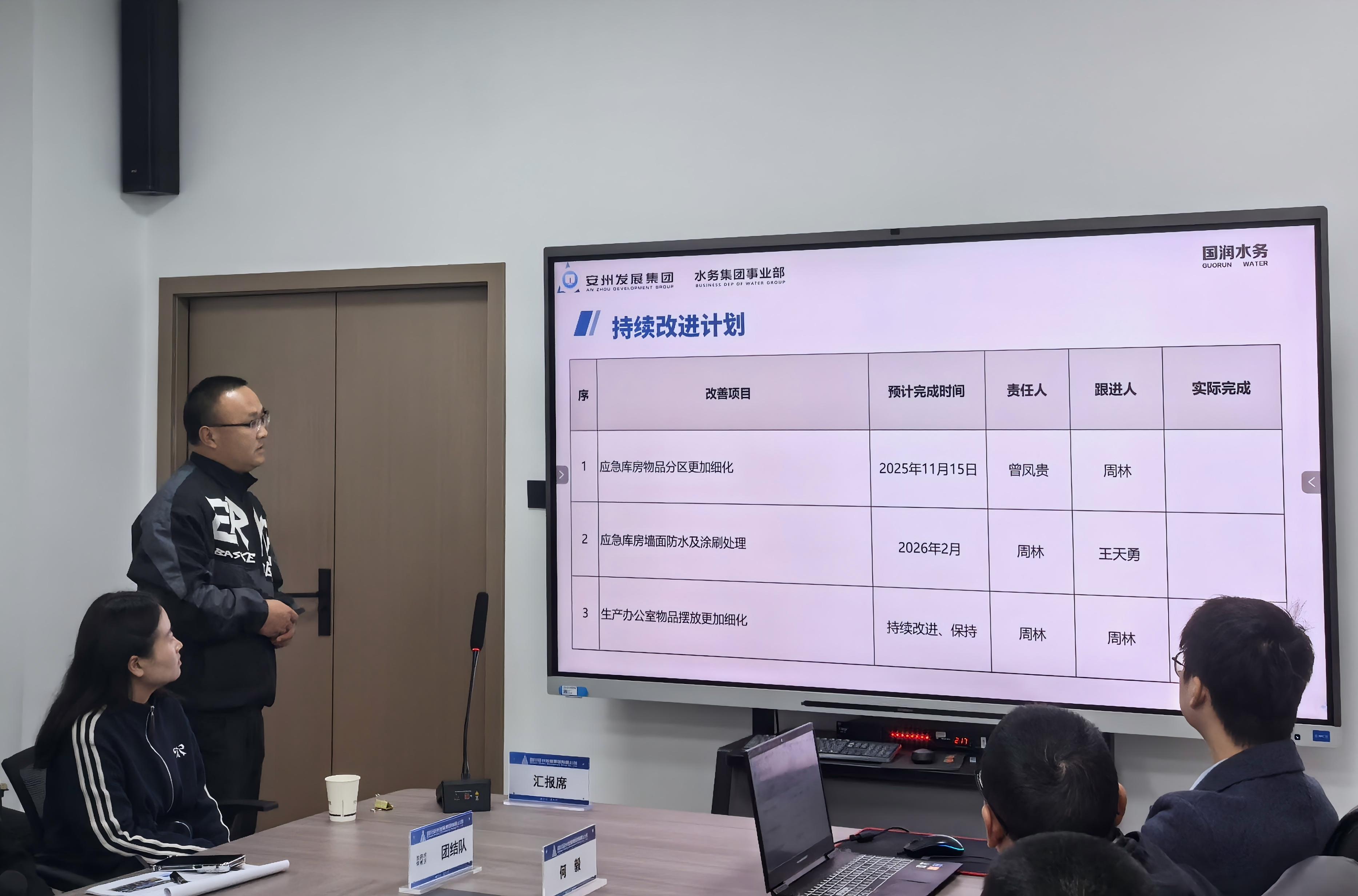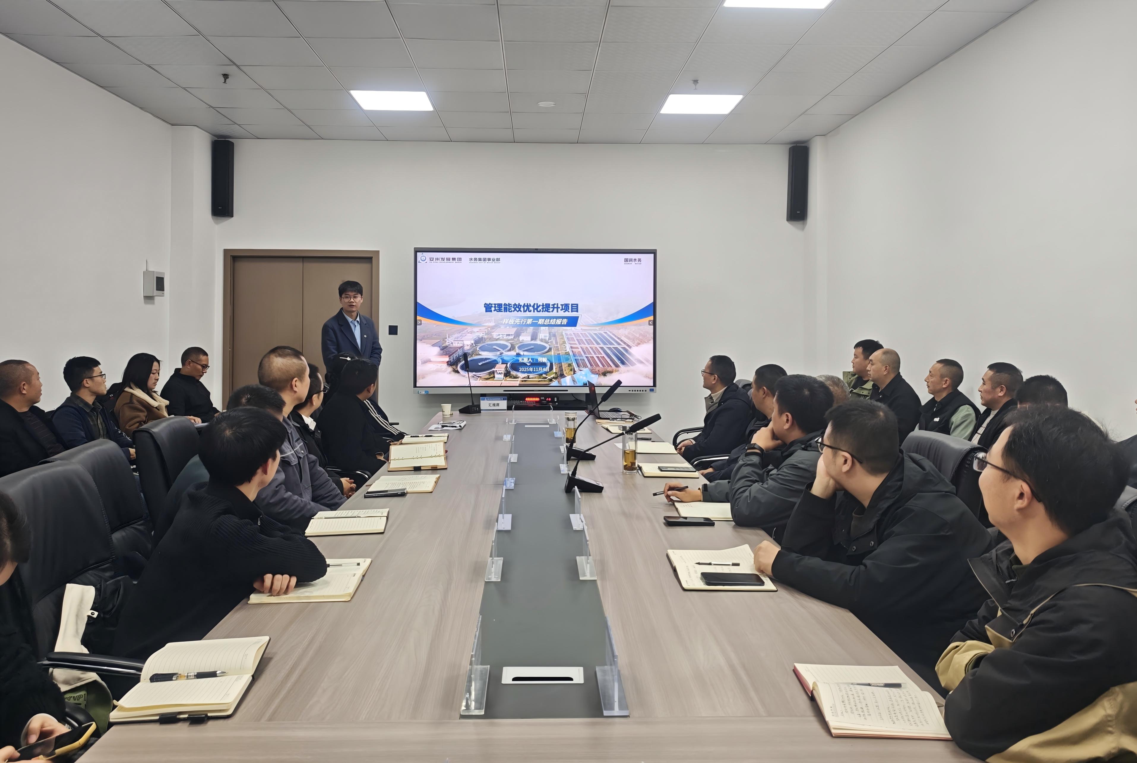 11月4日,安发展水务集团事业部召开“转作风,强思想,践行动——管理能效优化提升”项目第一期总结表彰会。事业部总经理张林、国润水务副总经理余洲、项目成员共计40人参加会议。