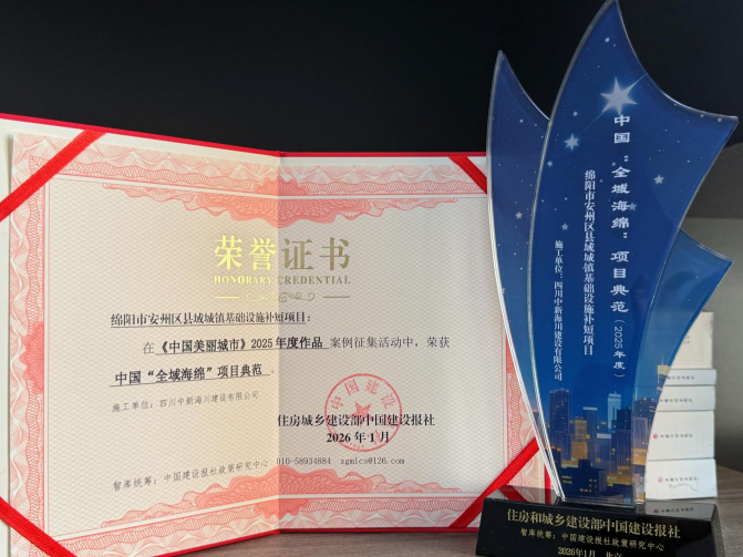 1月22日,在《中国美丽城市》2025年度作品案例征集活动中,安发展建工集团事业部中新海川公司匠心承建的“绵阳市安州区县域城镇基础设施补短项目”脱颖而出,荣获中国“全域海绵”项目典范称号。