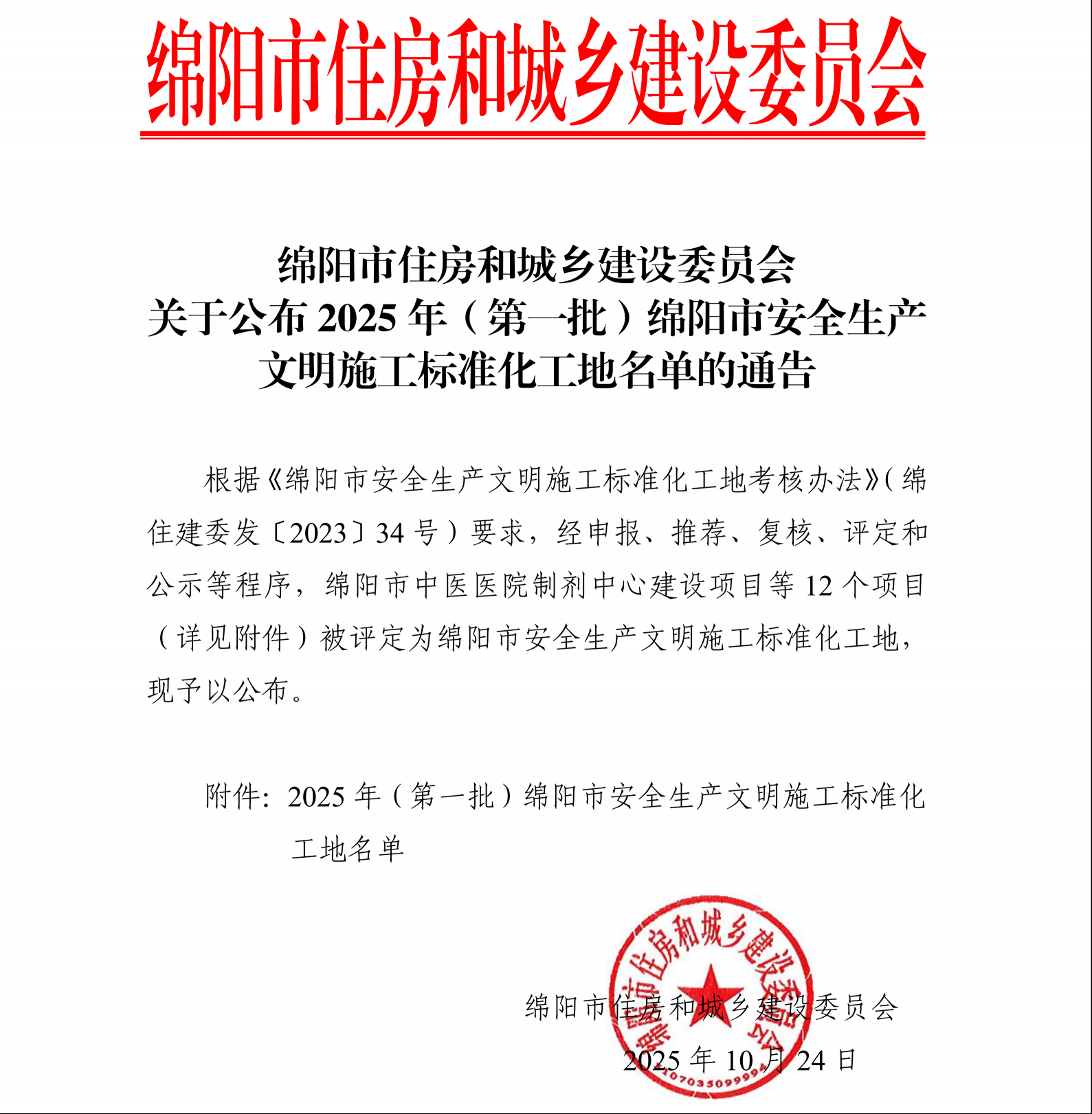 海珂紫云庭项目荣获2025年度 首批绵阳市安全生产文明施工标准化工地