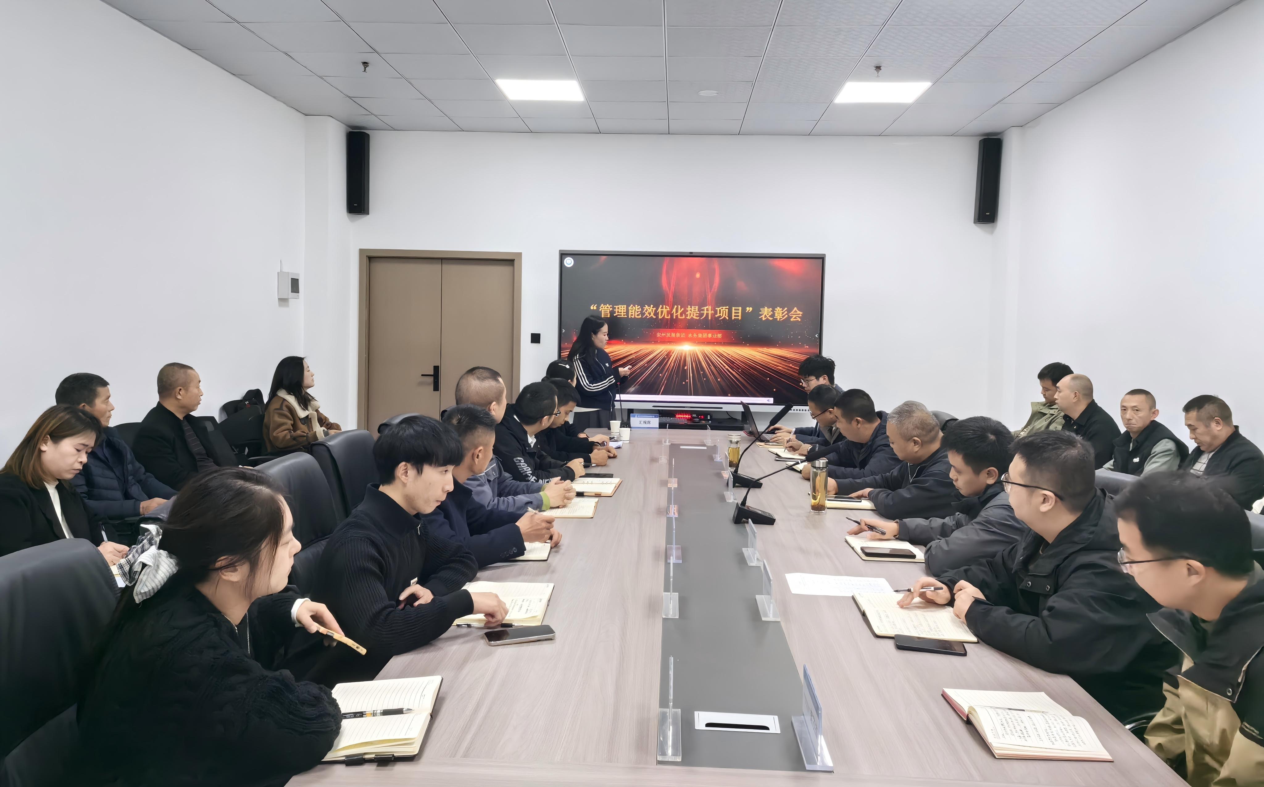 11月4日,安发展水务集团事业部召开“转作风,强思想,践行动——管理能效优化提升”项目第一期总结表彰会。事业部总经理张林、国润水务副总经理余洲、项目成员共计40人参加会议。