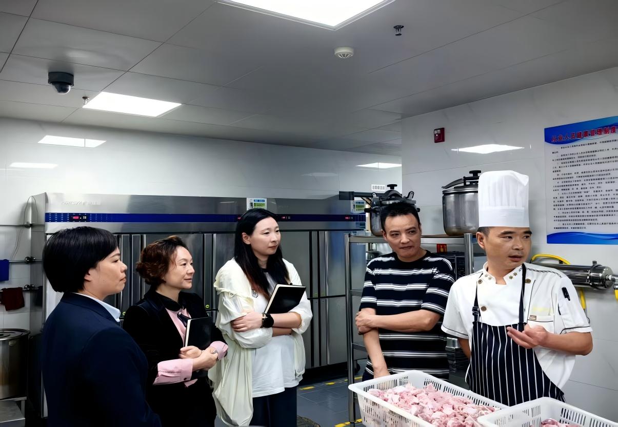 交流期间,绵阳市管理中心后勤保障团队负责人及厨师长带领我司人员参观了中心食堂及后厨间,并详细讲解了食堂功能分区、设备配置布局、食材存储管理及菜品供应,重点分享了厨房生熟分离管理、餐具消毒流程等标准化运营经验,双方就人员配置、成本管控等实操问题展开了深入探讨。